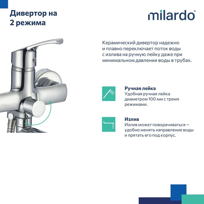• Гарантия на смесители Milardo® – 7 лет, на душевые аксессуары – 1 год, на картридж – 3 года.