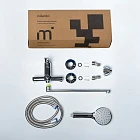 В комплекте трехрежимная лейка для душа (100 мм), ПВХ-шланг (1,5 м) в оплетке из нержавеющей стали и держатель для лейки.
