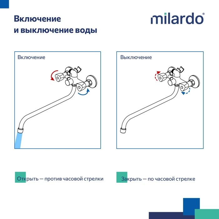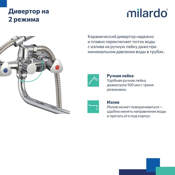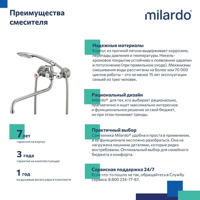• Гарантия на смесители Milardo® – 7 лет, на кран-буксы – 3 года, на душевые аксессуары – 1 год.