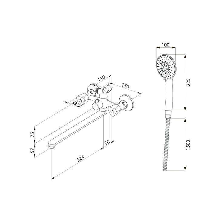 Поворотный излив делает смеситель удобным как для купания, так и для уборки или стирки. Лейка для душа (3 режима) с держателем, гибкий шланг (1,5 м) в оплетке из нержавеющей стали и крепеж идут в комплекте.