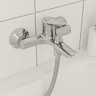 Излив эстетично интегрирован в корпус, вода из него поступает в ванну под комфортным углом. В комплекте лейка для душа (67 мм), ПВХ-шланг (1,5 м) в оплетке из нержавеющей стали и держатель для лейки.