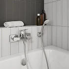 Излив эстетично интегрирован в корпус, вода из него поступает в ванну под комфортным углом. В комплекте лейка для душа (67 мм), ПВХ-шланг (1,5 м) в оплетке из нержавеющей стали и держатель для лейки.