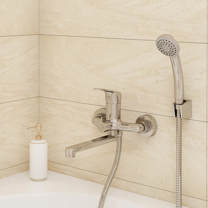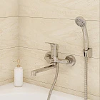 Смеситель для ванны Simp отличается простотой формы и естественной плавностью линий. Он подойдет для любого интерьера в классическом или современном стиле. Поворотный излив эстетично интегрирован в корпус, вода из него поступает в ванну под комфортным углом. В комплекте лейка (3 режима) для душа, шланг и держатель для лейки.