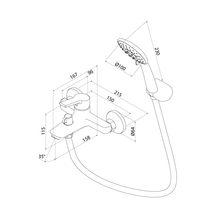 В комплекте лейка для душа (100 мм), ПВХ-шланг (1,5 м) в оплетке из нержавеющей стали и держатель для лейки.