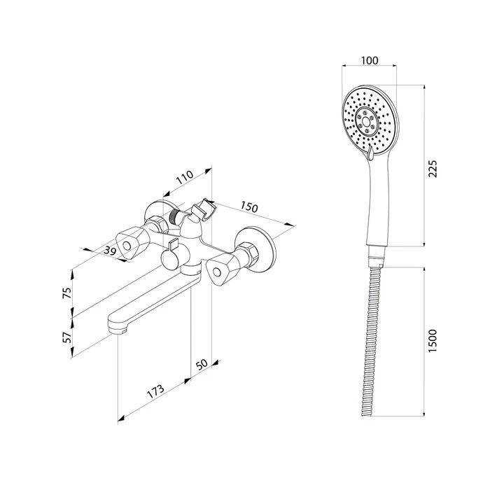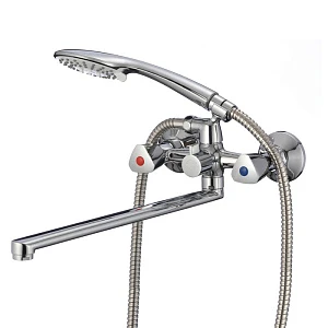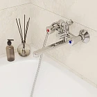 Компактный излив (173 мм) можно повернуть под корпус, благодаря чему смеситель можно использовать и в душевой. Лейка для душа (3 режима) с держателем, гибкий шланг (1,5 м) в оплетке из нержавеющей стали и крепеж идут в комплекте.