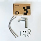 В смесителе Azure тщательно продуманный функционал и эргономика. Такой продукт можно смело выбирать просто за красивые линии. Благодаря увеличенному выносу излива вода поступает в наиболее удобную для мытья рук точку раковины. В комплекте гибкая подводка и крепеж.