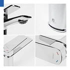 • Скрытый аэратор легко извлекается из корпуса смесителя с помощью обычной монетки, что значительно упрощает его очистку.