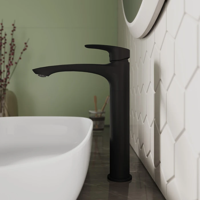 Смеситель для умывальника Rora отличается универсальным характером: основной акцент в его дизайне приходится на плавные линии корпуса и трендовый цвет. Модель в черном цвете одинаково выигрышно смотрится на контрастных белоснежных раковинах и дополняет собой однотонную керамику. Конструкция высокого смесителя обеспечивает дополнительный комфорт в ежедневном использовании и подходит для установки с накладными раковинами-чашами. В комплекте гибкая подводка и крепеж.