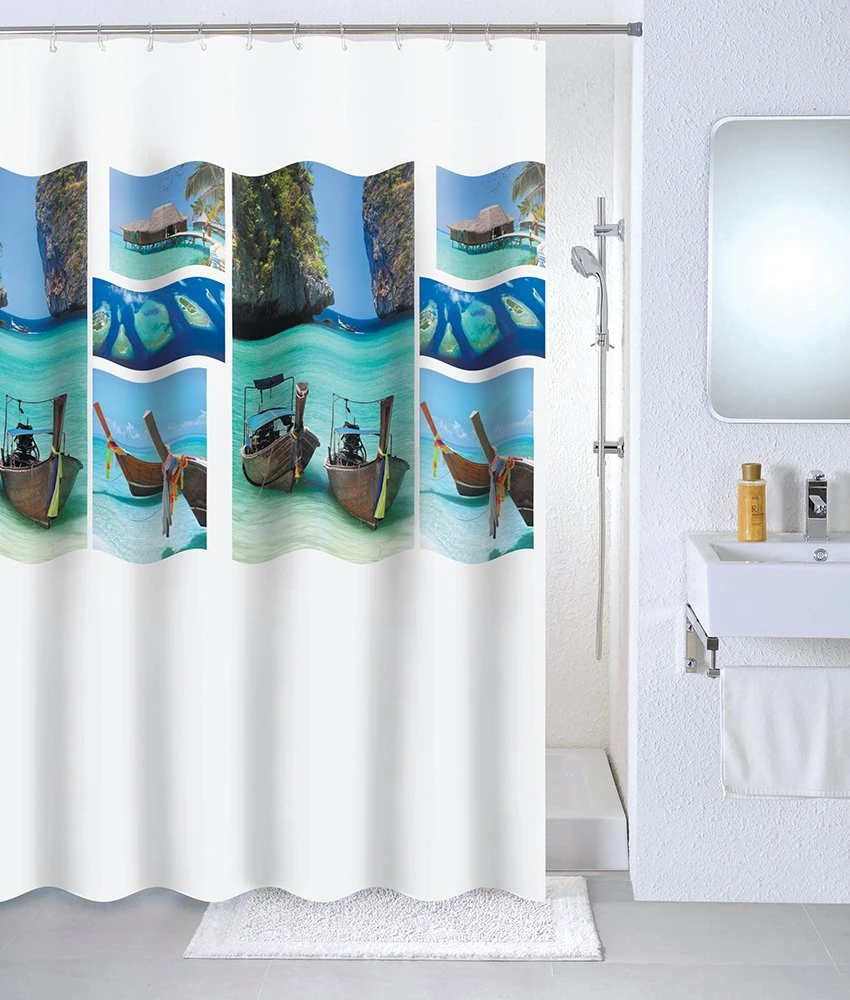 Материал PEVA — совершенно нетоксичный полимерный материал, не обладающий запахом. Изображение на штору из PEVA наносят специальными неаллергичными стойкими красителями, благодаря чему оно не поблекнет со временем и не вызовет нежелательных реакций со стороны организма.